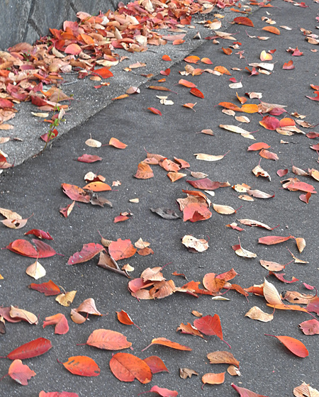 落葉ふみ踏み‥ Posted on 2025年12月2日2025年12月2日 by @kuma 日一日彩る紅葉山下りる 壁沿いの時雨の落葉踏み散歩 紅葉の桜の葉っぱ風に煽られ散り散りと ナマコ壁に沿ってどこまでも ・・・ 今朝は落葉ふみ踏み散歩です
